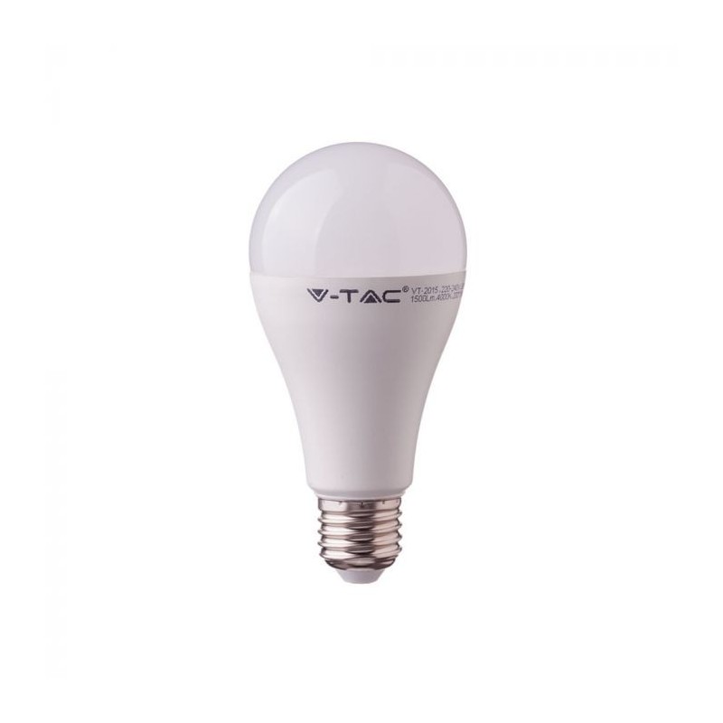 Lampadine - E27: confezione da 3 Lampadine LED V-TAC VT-2015 dotate di una potenza di 15W e attacco E27. Forma Bulb A65 in materiale termoplastico bianco e copertura opaca. Tecnologia LED SMD caratterizzata da un fascio luminoso di 200°, flusso luminoso di 1350 lm e rapporto di 90 lm/W. La potenza di 15W è equivalente a 90W di una Lampada a incandescenza.