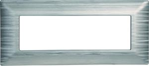 Placca compatibile Bticino Matix 6 moduli realizzata in plastica colore argento satinato.